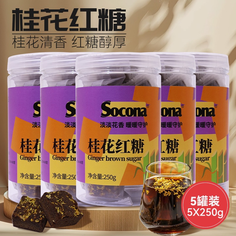 SOCONA桂花紅糖塊250g * 5缶純正手作りサトウキビ原汁紅糖塊独立小包装