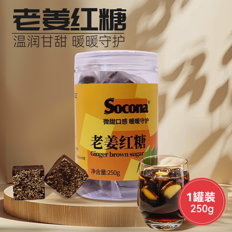 SOCONA老姜紅糖ブロック250g缶純正手作りサトウキビジュース紅糖姜茶独立小包装