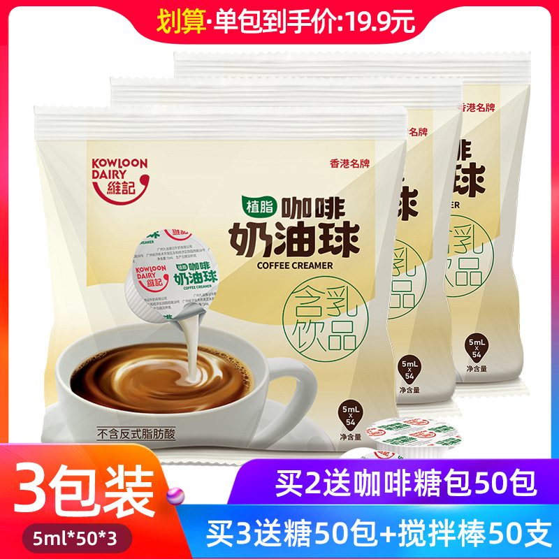維記コーヒーミルクボール植脂淡ミルクパック液体ミルクボール紅茶パートナーミルク5ml * 54粒3袋入り