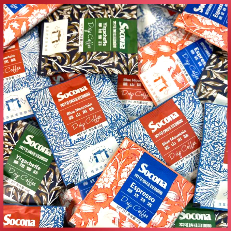 SOCONA耳かけコーヒー意式特濃藍山耶加美式フィルターバッグ新鮮焙煎現磨純黒コーヒー粉