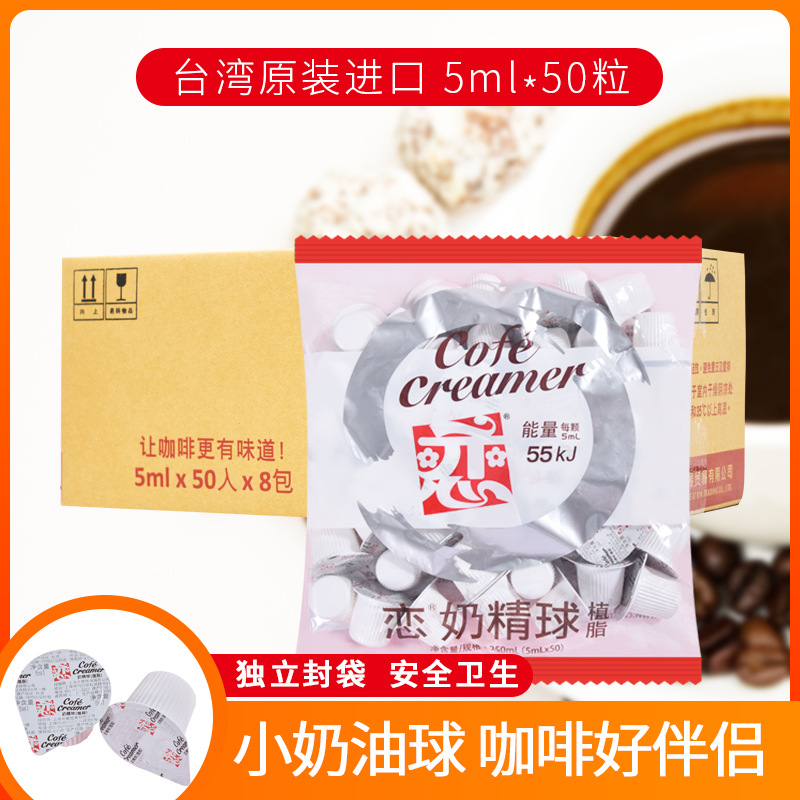 台湾恋牌ミルクボール5ml * 50粒 * 8袋の全箱コーヒーミルクの良いパートナークリームボール液体ミルクバッグ