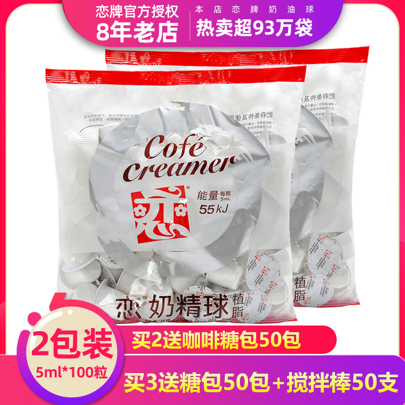 台湾恋牌ミルクボールコーヒーミルクボールパートナーミルククリームボール生乳植脂ミルクパック5ml * 50粒2袋