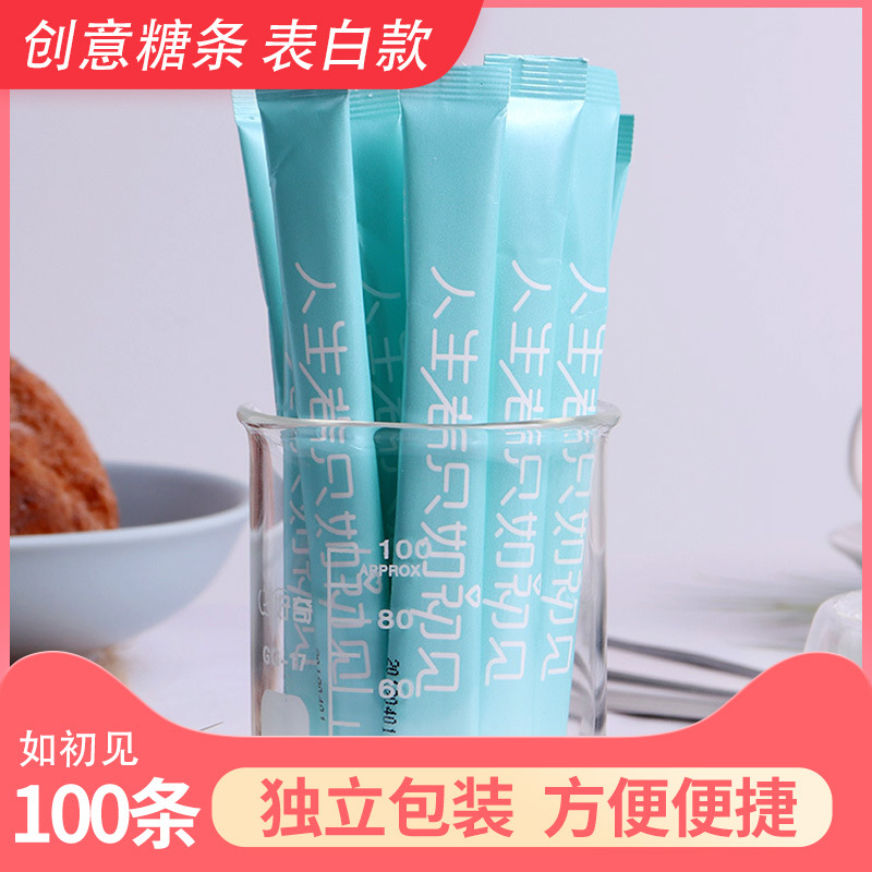 クリエイティブな砂糖パックのコーヒーパートナーの砂糖の白い砂糖パックの砂糖の告白の青い色は、最初に100本の小さな包装を見たようなものです