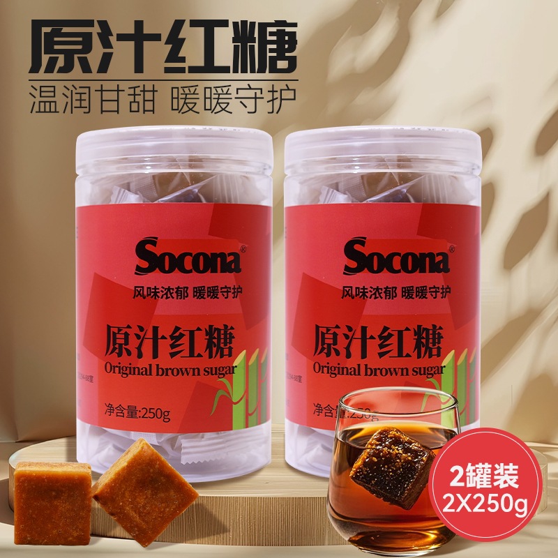 SOCONA原汁紅糖塊250g * 2缶純正手作りサトウキビ原味紅糖塊独立小包装