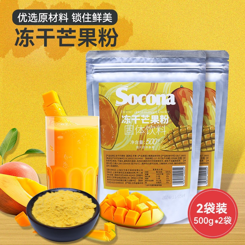 SOCONA冷凍乾燥マンゴー粉500g * 2袋果物野菜粉沖飲みミルクティーケーキプリンアイスクリーム原料