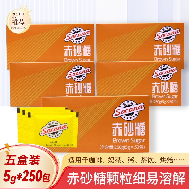 Socona黄糖包赤糖コーヒーパートナー専用白砂糖金黄調糖包5g * 50包 * 5箱