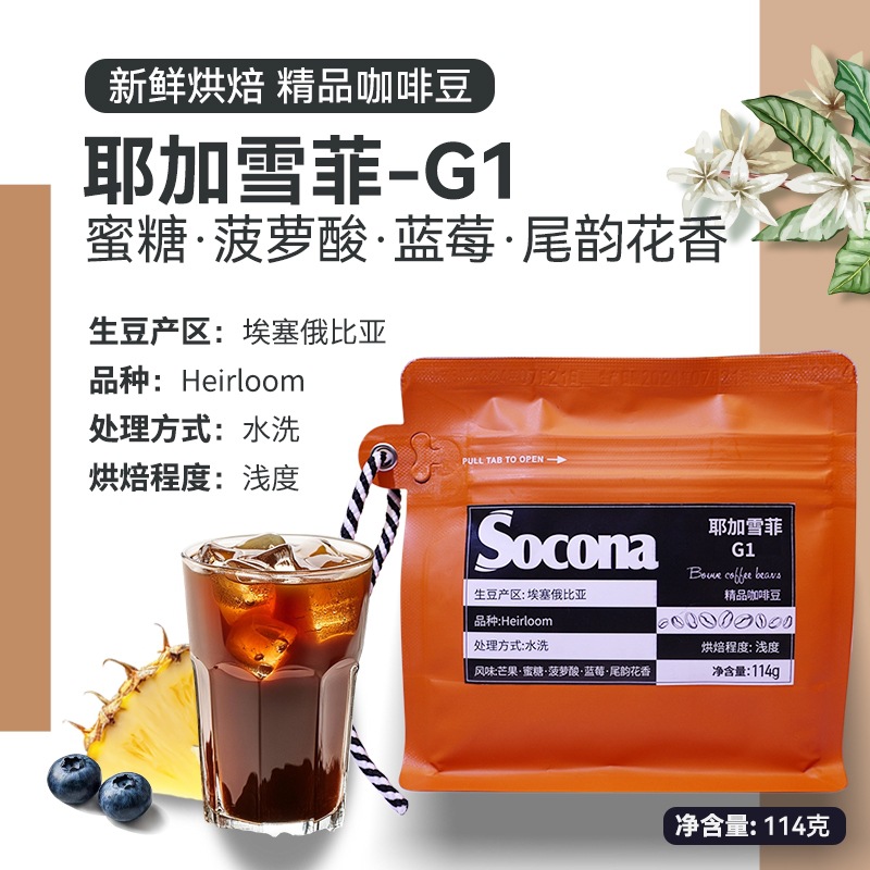 Soconaエチオピアイエガ雪菲G1逸品コーヒー豆新鮮浅焙煎冷手沖単品豆