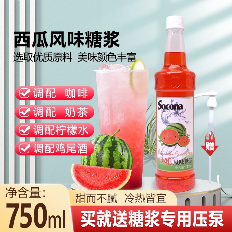 SOCONAスイカ風味シロップ750ml調コーヒーミルクティー専用カクテルフルーツ飲料調酒商用