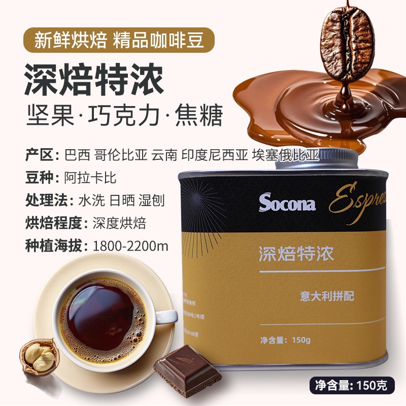 Soconaイタリア式の特濃は逸品のコーヒー豆の深さの新鮮な焙煎を配合します。