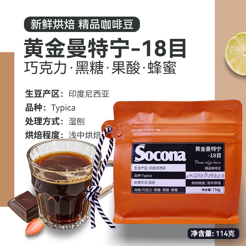Socona黄金曼特寧18目の逸品コーヒー豆の新鮮な焙煎手は冷えています。