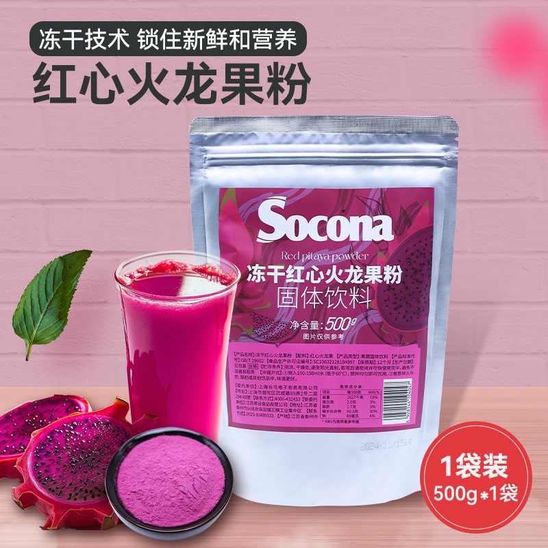 SOCONA冷凍乾燥ハート火龍果粉500g果物野菜粉抽出ジュースミルクティー焙煎ケーキ麺原料