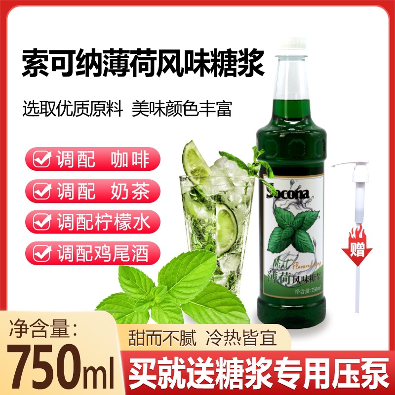 SOCONA莫西多緑ミント風味シロップ750mlコーヒーミルクティーカクテル果飲料調酒商用