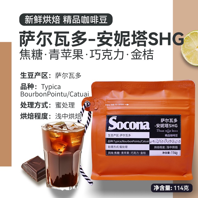 SoconaエルサルバドルのアニタSHG蜜処理精品コーヒー豆の新鮮な焙煎手が冷たいアメリカ