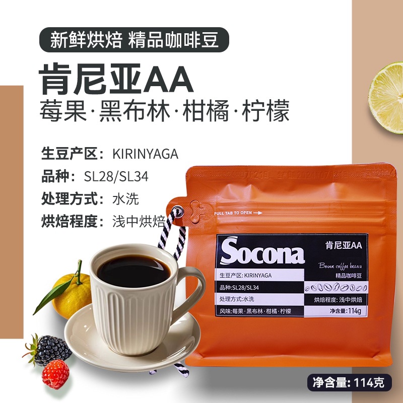 SoconaケニアAA逸品コーヒー豆の果実の風味は新鮮で浅い中で焙煎しています。