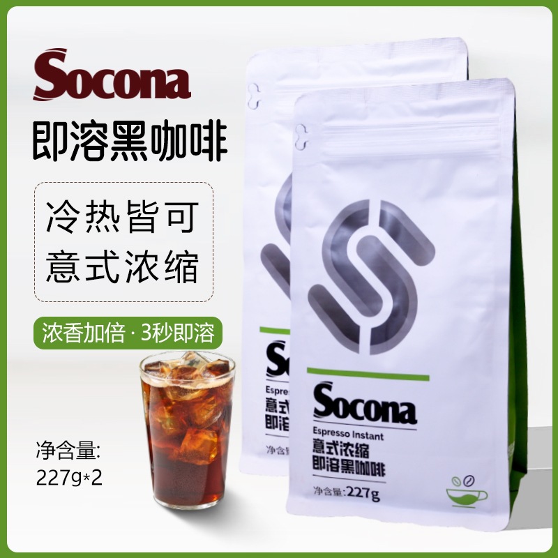SOCONAイタリア式濃縮インスタント純黒コーヒー粉227g特濃氷アメリカラテ冷熱ダブル泡126杯