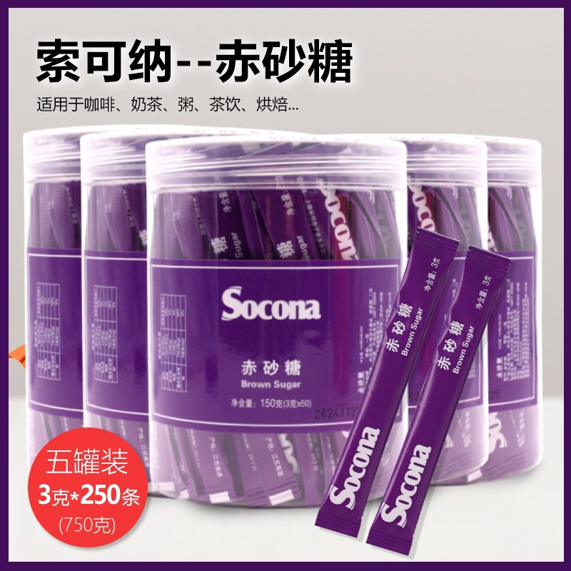 Socona赤砂糖砂糖パック3g * 250本5缶調コーヒー豆乳専用黄糖少糖微甘小包装