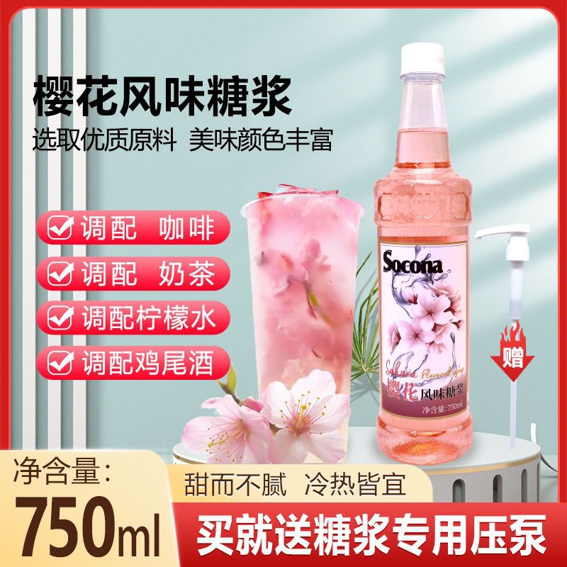 SOCONA桜風味シロップ750ml調コーヒーミルクティー専用カクテルフルーツ飲料調酒業務用