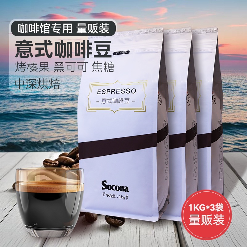 SOCONAエスプレッソ豆1kg * 3袋量販中深さ新鮮焙煎現磨手沖黒コーヒー粉