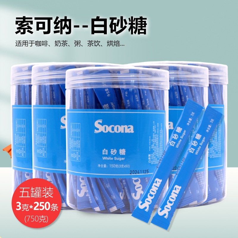 Socona白砂糖包コーヒー専用3g * 250本5缶朝食豆乳少糖微甘調糖小包装