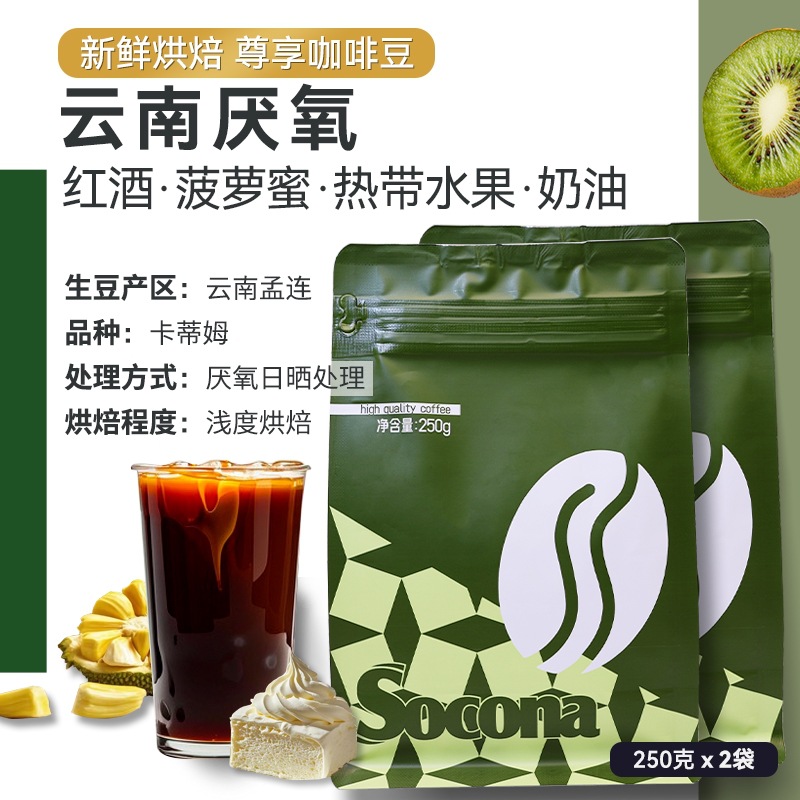 Soconaは雲南の嫌気性の日光の逸品のコーヒー豆の500gの浅い焙煎の単品の手を享受して冷たくてコーヒーを抽出します。
