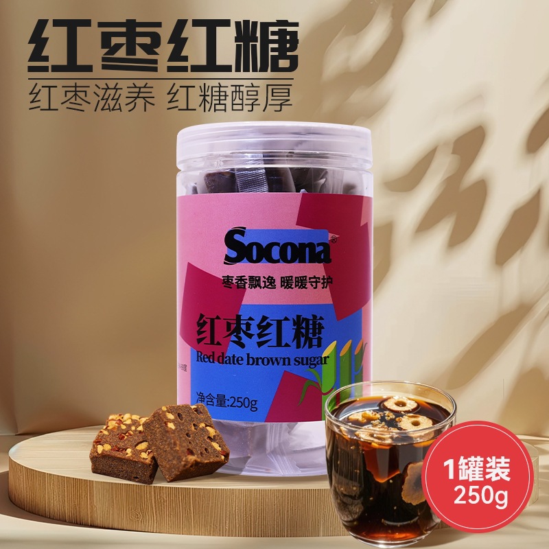 SOCONA赤いナツメの赤い砂糖の塊の250gの缶は純粋な手作りのサトウキビの原汁の赤い砂糖の塊を詰めて独立して小さい包装を作ります。
