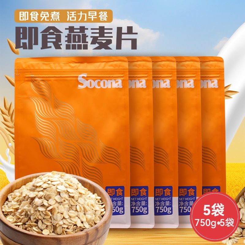 SOCONAインスタントオートミールの原味750g * 5袋入りの全穀物栄養朝食は、インスタント食品の代わりに調理しないでください