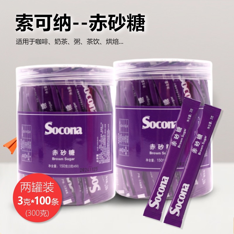 Socona赤砂糖砂糖パック3g * 100本2缶調コーヒー豆乳専用黄糖少糖微甘小包装