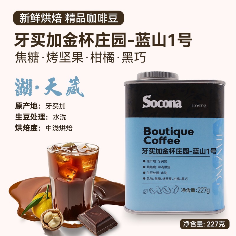 Soconaジャマイカゴールドカップ荘园青山1号精品コーヒー豆の中で浅い焙煎水洗い手で単品豆を流す
