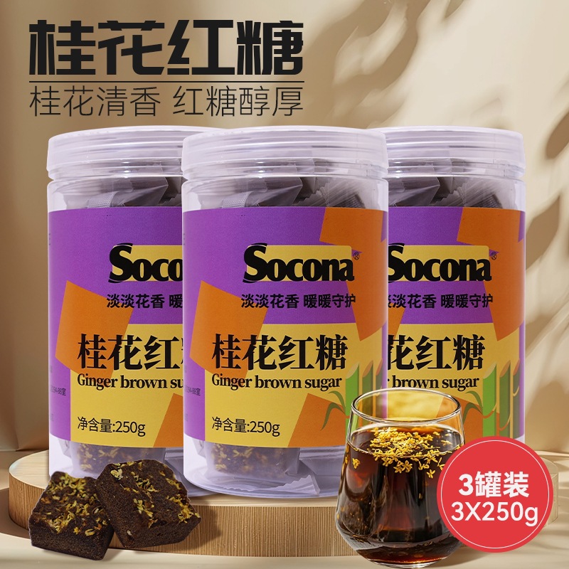 SOCONA桂花紅糖塊250g * 3缶純正手作りサトウキビ原汁紅糖塊独立小包装