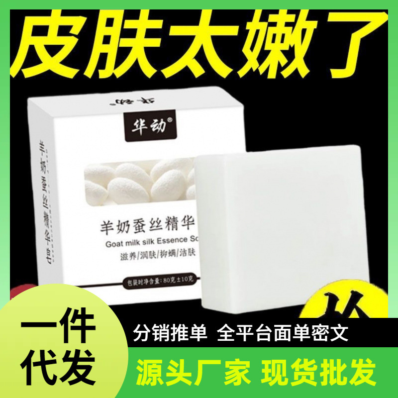 Huadong ヤギミルクシルクエッセンス石鹸洗顔、ダニ除去、ニキビ除去、黒ずみ除去、ディープクレンジング洗顔と入浴手作り石鹸