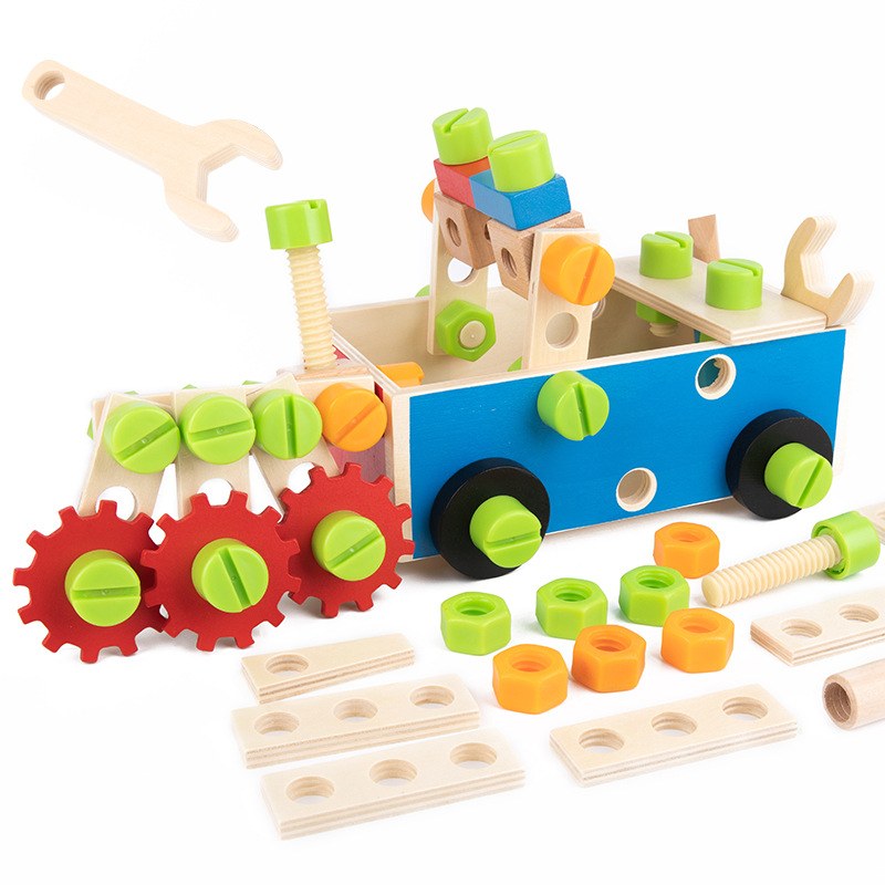 子供の益智のおもちゃの木製の百変のナットの組み合わせは分解してねじの工具の箱を組み立てます。