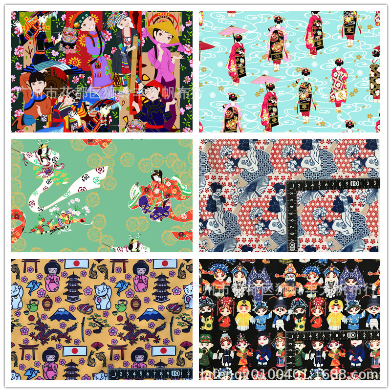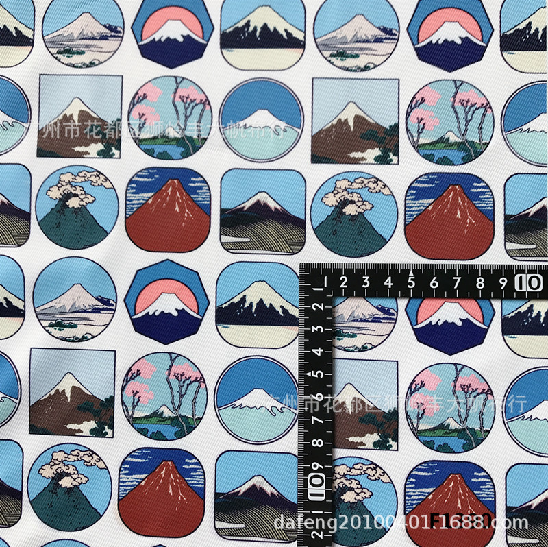 TC綿布デジタルプリント日系和風富士山薄綿細帆布プリント生地収納袋カーテン生地