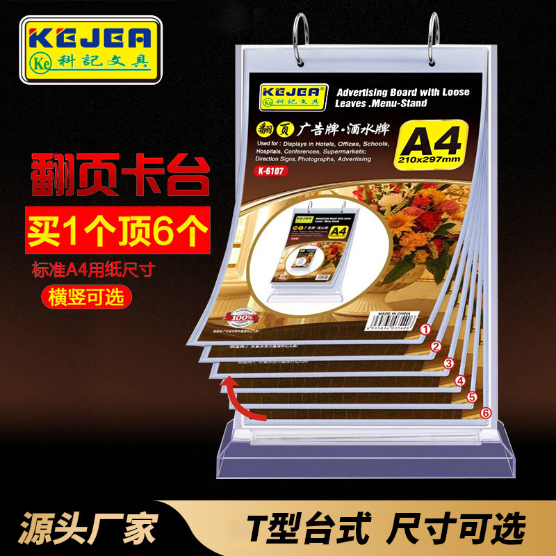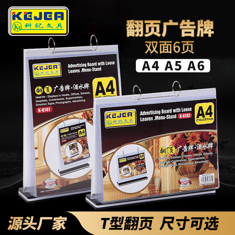 ソースメーカー科記ページをめくるt型看板卸売り多機能展示ブランド酒水牌両面透明台カード