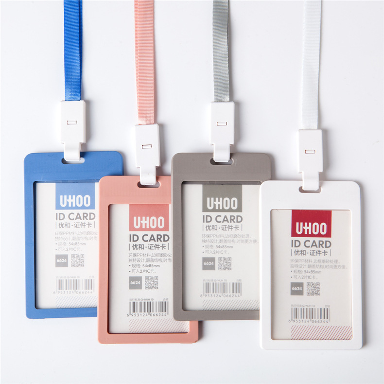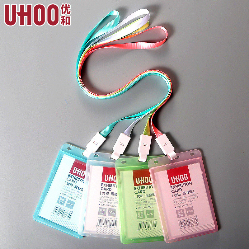 Uhoo優とキャンディー色のプラスチック工牌単透大容量作業牌は、ストラップ付きで学生カードカバーの卸売りをしています。