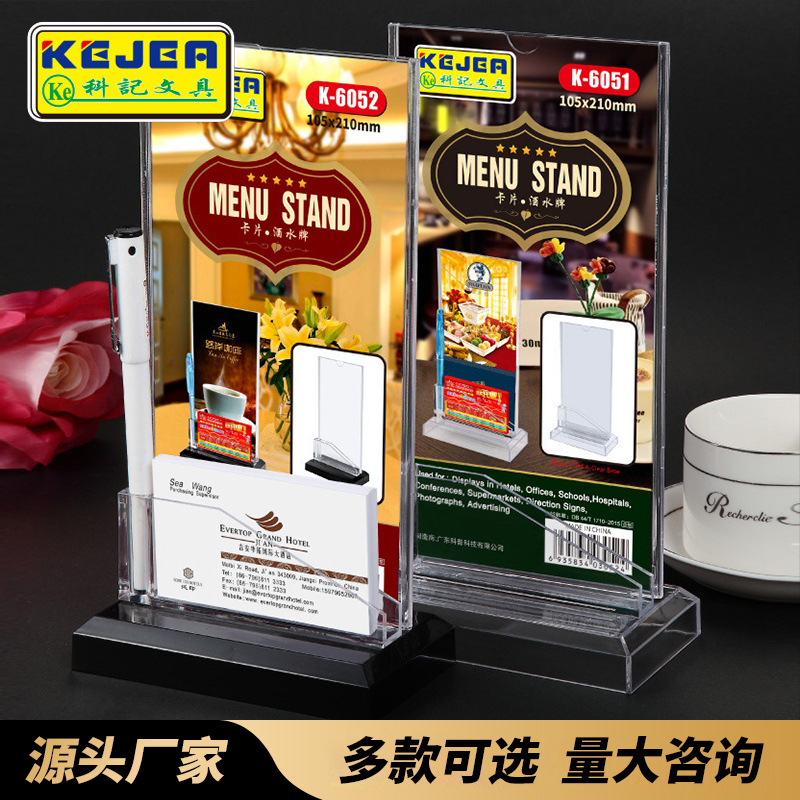 源流メーカー科記t型多型台札カードスロット付き酒水牌両面透明台カード卸売り