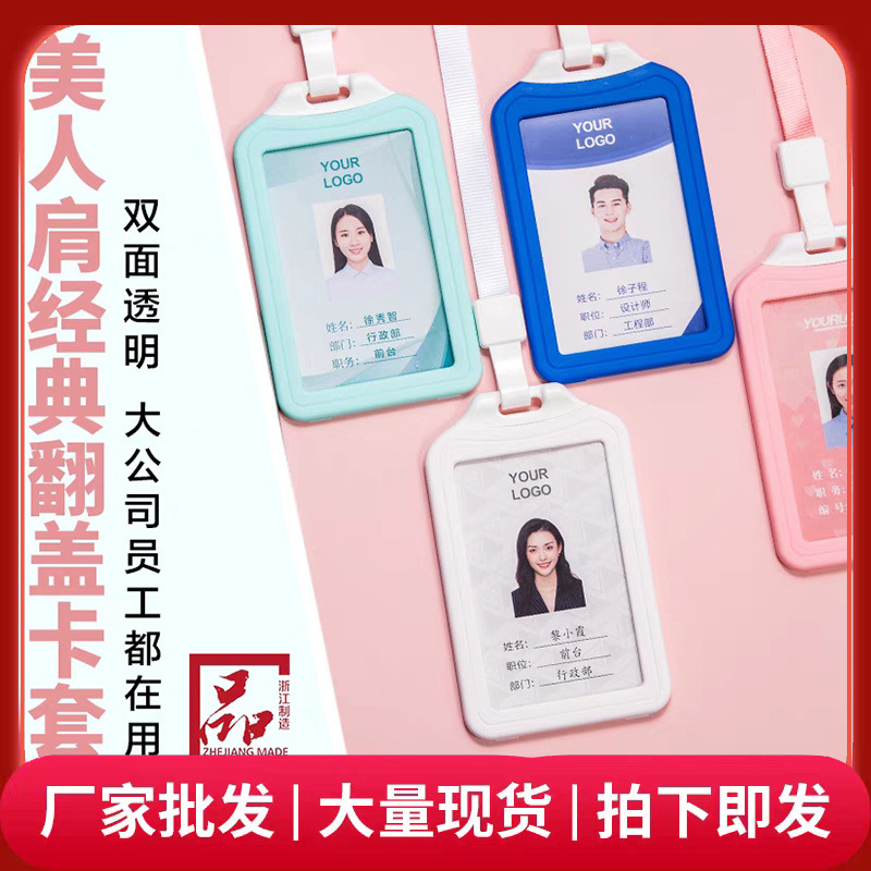 Uhoo優と美人の肩のカラーの硬いカードのカバーの卸売りの両面の透明な仕事の証明書のカバー式の従業員のカードのカバー