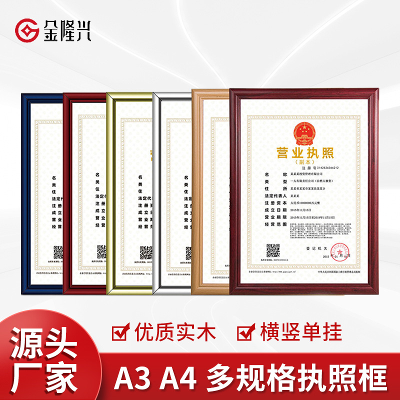 元のメーカーの金隆興a 3営業執照枠の卸売りa 4は両用の証明書の額縁を並べて代行します。