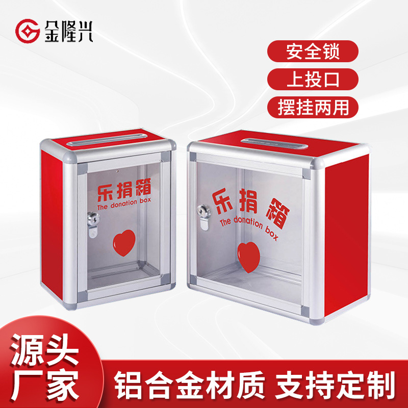 元のメーカーの金隆興アルミニウム合金の音楽の寄付箱の卸売りは鍵の透明な愛の箱を持って壁式の募金箱を掛けます。