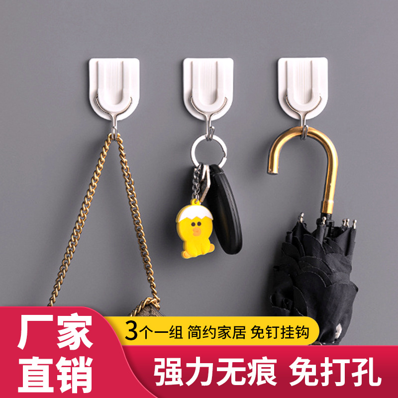 源メーカー振信創意u型白色シンプル粘着フック卸売り3つの強力粘着壁プラスチックフック