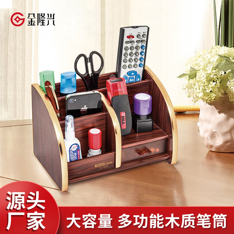 元のメーカーの金隆興の木製の筆筒の卸売りのアイデアは筆の座の多機能の組み合わせの引き出しの収納箱を収納します。