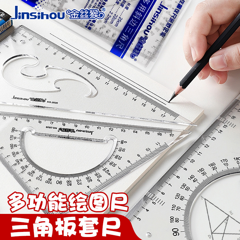 金糸猿の多規格の三角定規の卸売りの透明な三角のスーツの工事の絵は雲の定規の測定器の全体を持ちます。