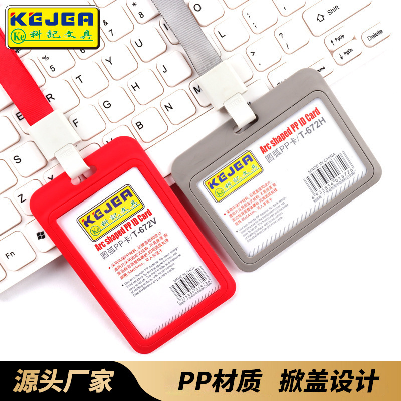 源メーカー科記カラー硬カードカバー卸売り単透円弧大容量作業証従業員カバー式カードカバー