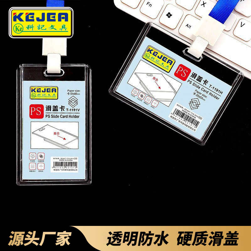 源メーカー科記硬質カードカバー卸売り両面透明学生証明書カード従業員スライド式作業証明書