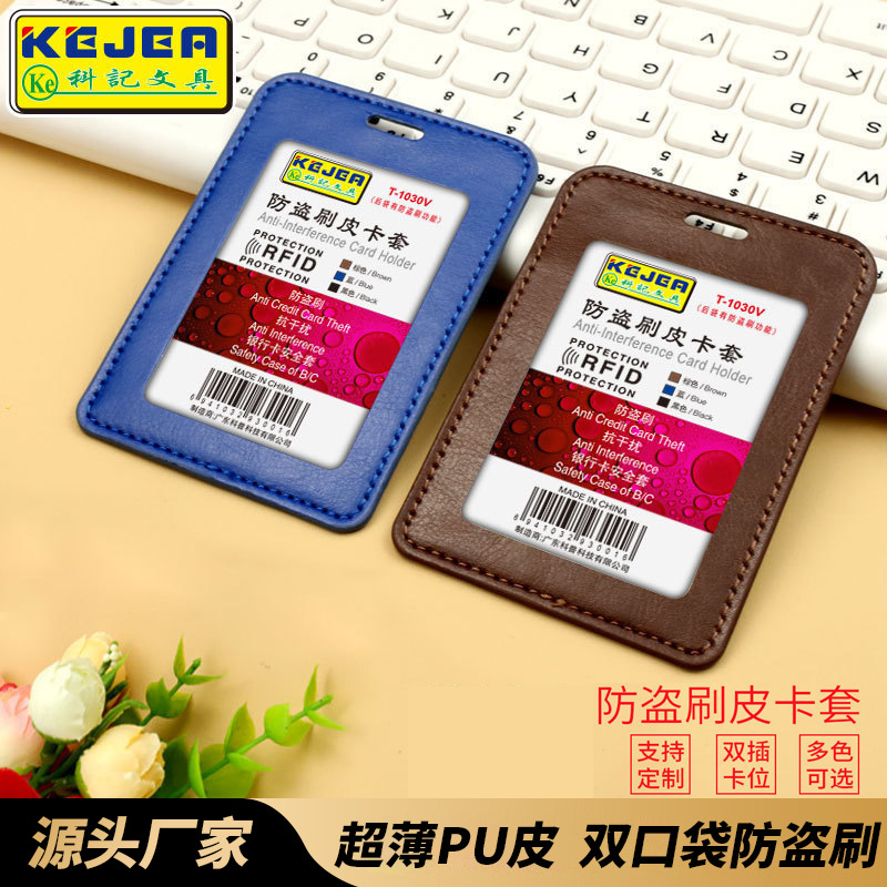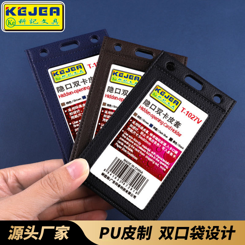 元のメーカーの科記の濃い色の皮質のカードは卸売りして単透の柔らかい仕事の証明の高級な従業員の仕事の札を通します。