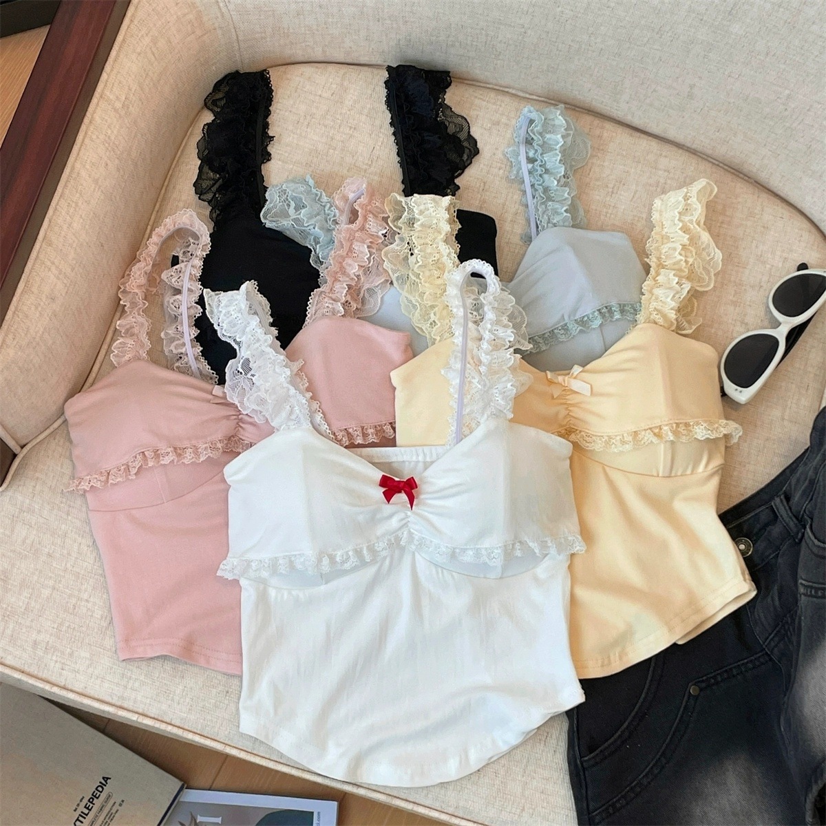 1931 # 甘い純粋な欲望スタイルのレースのリボンキャミソール女性の夏のファッション美しいバックストラップ胸パッド底