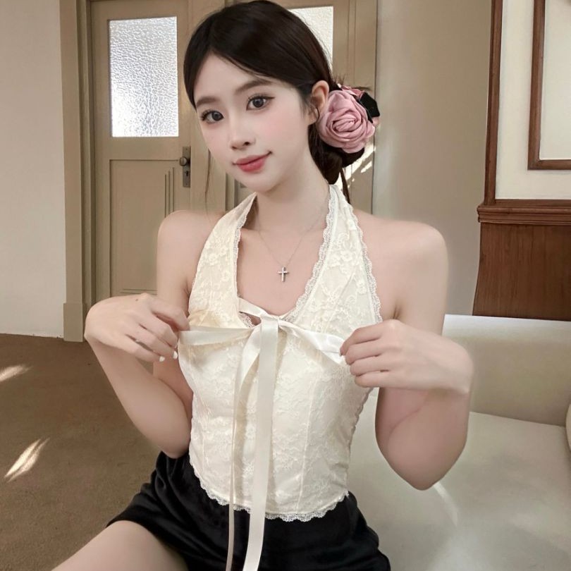 2042 # 新作蝶結びvネックレースキャミソール女性夏甘ギャルセクシー首掛け絶景トップス