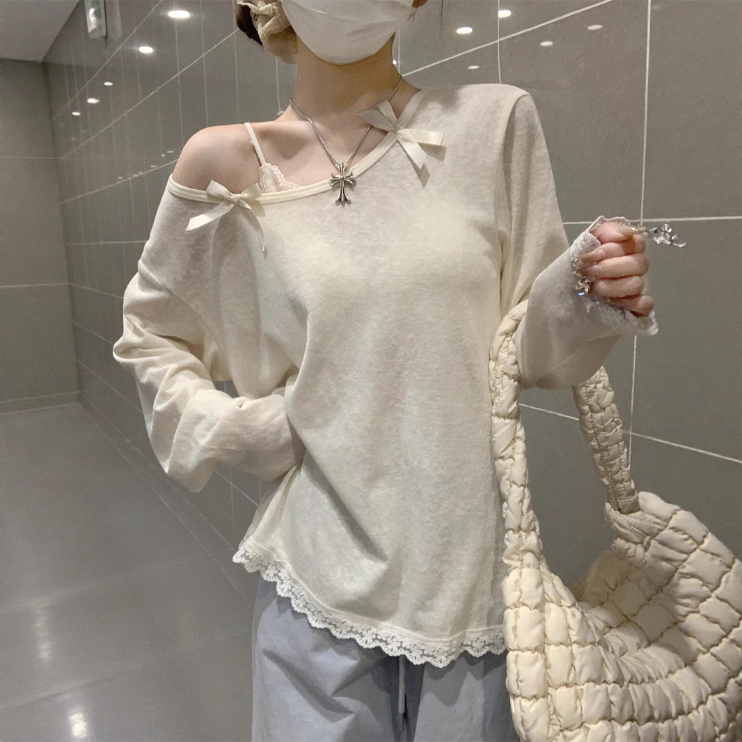 2086fs 薄い日焼け止め長袖 T シャツ女性の斜め肩リボン日焼け止めブラウス