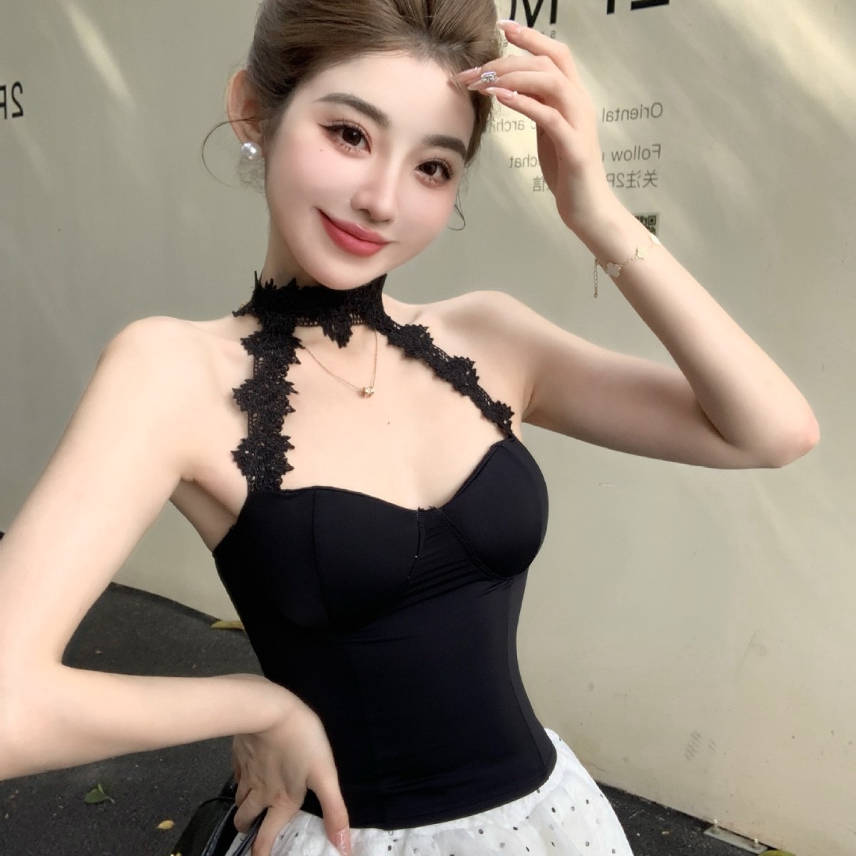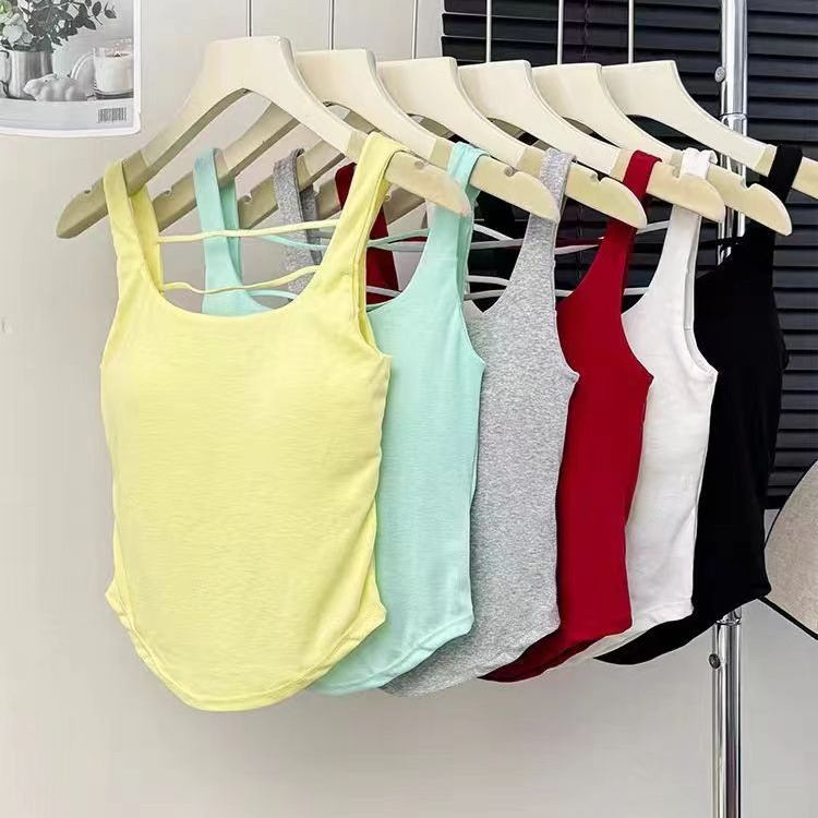 1832 # 胸パッド付きキャミソール、女性用インナー、スリムフィット、ニッチ、ウエスタンスタイル、ノースリーブTシャツトップスイン