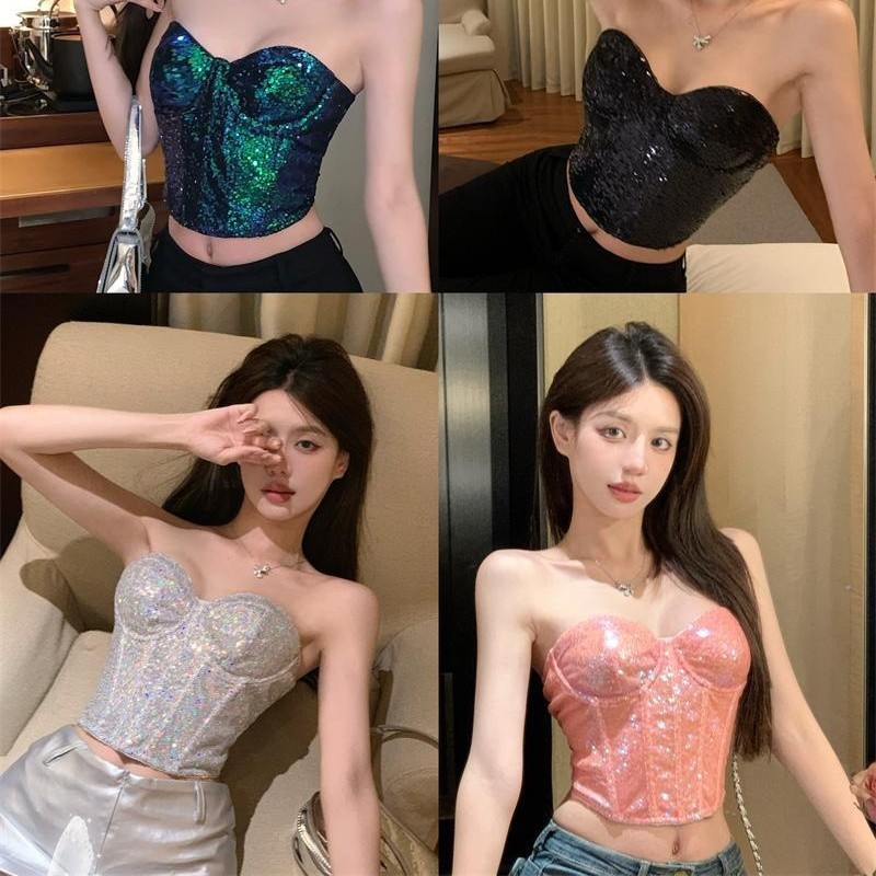 1902 # アメリカンニッチでシックなデザイン、ハイエンドの秋のレトロでセクシーな気質のベルベットのスリムフィットチューブトップ