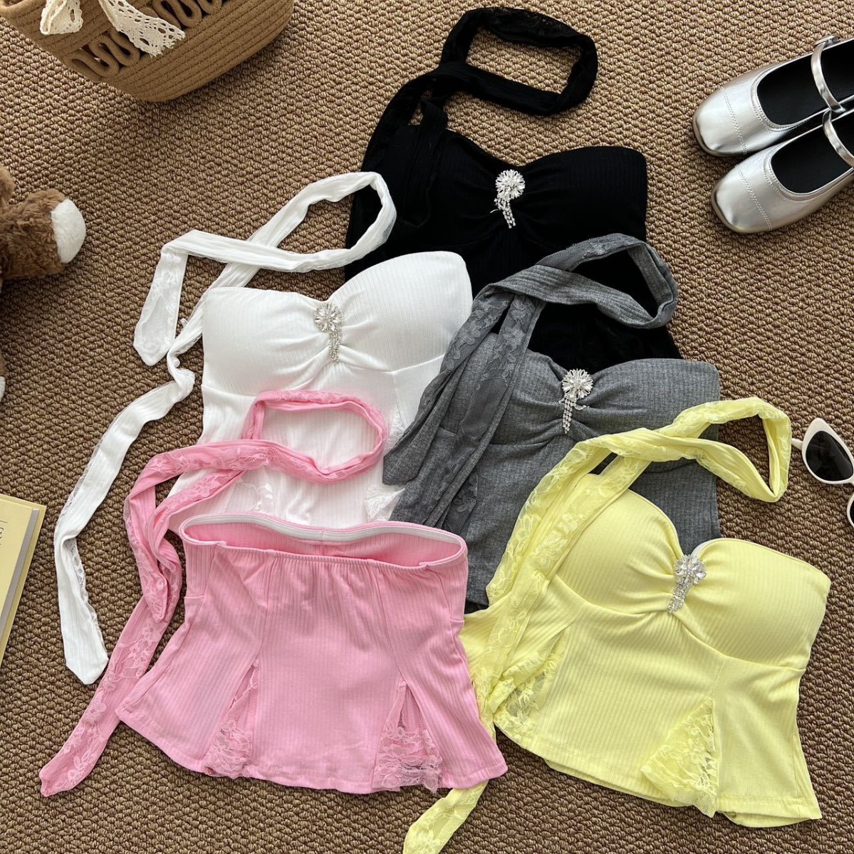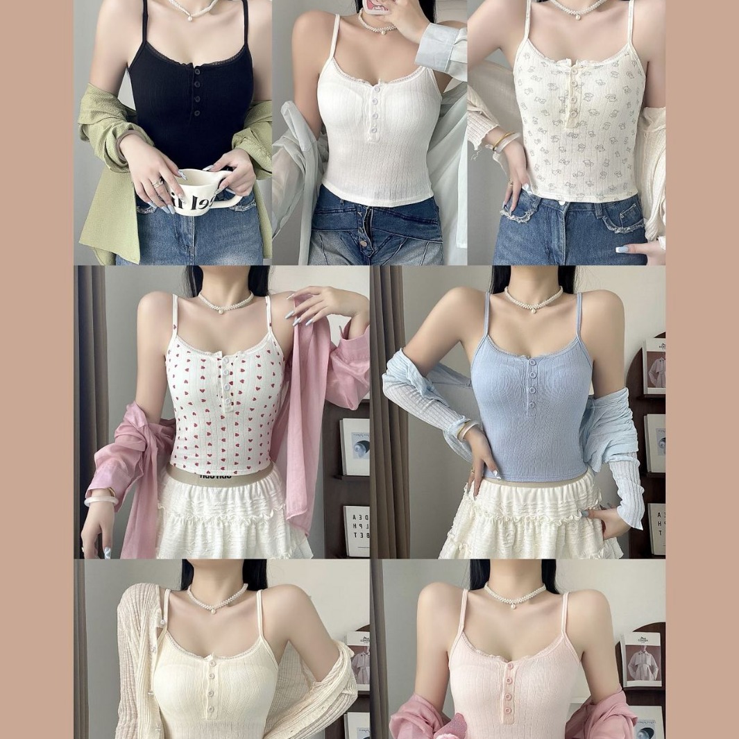 H340 #2024新型レースのボタンデザインのキャミソール女性の胸パッド一体式の短い上着